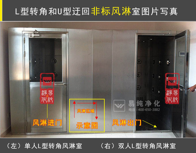 六、L型異形風(fēng)淋室與標(biāo)準(zhǔn)風(fēng)淋室是進(jìn)入潔凈室緩沖最好的凈化設(shè)備之一,它利用高速的氣流吹落并清除人身服裝或物料表面上附著的粒子。杜絕工作人員將頭發(fā),灰塵、細(xì)菌帶入車間,達(dá)到工作場地嚴(yán)格的無塵凈化標(biāo)準(zhǔn),生產(chǎn)出高質(zhì)量的產(chǎn)品。