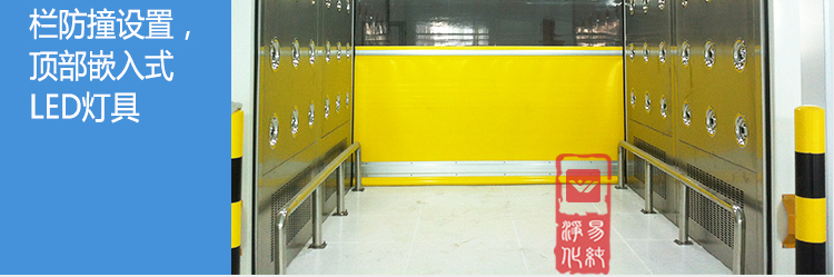 雙門互鎖風淋室快速卷簾門,專門為潔凈凈化車間使用,防止室內(nèi)外的空氣相互流通以及除去物體表面的灰塵,避免將污染源帶入到潔凈車間中去??焖匍T為空間狹小的物流通道設計,內(nèi)置型馬達不占用安裝空間,滿足特殊場地需要。門簾由較輕的織物及鋁制抗風肋條組成,提升速度快、安全可靠,出入方便,防蟲,防塵。