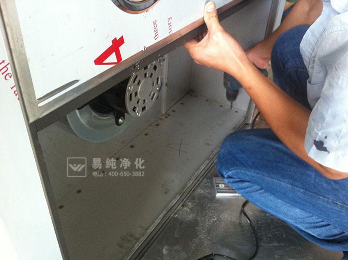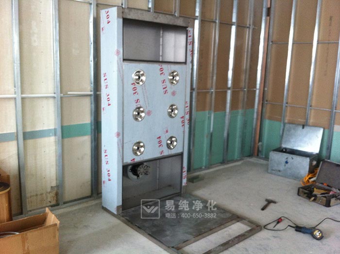 (一)風淋底盤一般由不銹鋼方管制作,厚度為40MM,底盤為整體組成,首先將風淋底盤置于風淋安裝位置處。風淋底盤不需要與地面進行固定,完全靠自身重量即可保持穩(wěn)固。一般單人風淋室為350KG,雙人風淋室為650KG左右。