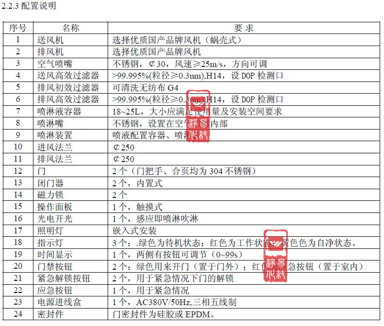 3.4采用壓縮空氣為動(dòng)力源;水淋室配潔凈照明燈,使照度達(dá)到400勒克斯。