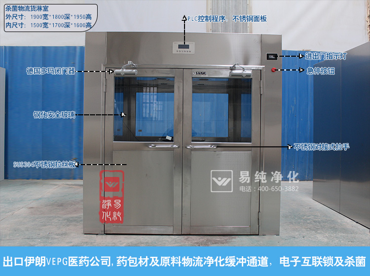 貨淋室門電子互鎖,可以兼起氣閘室的作用,防未被凈化的空氣進(jìn)入潔凈室,達(dá)到有效的凈化效果,經(jīng)高效過(guò)濾器過(guò)濾后的潔凈氣流由可旋轉(zhuǎn)噴嘴從各個(gè)方向噴射至物體表面,有效而迅速清除塵埃粒子,帶有塵埃粒子的空氣再由初、高效過(guò)濾器過(guò)濾后重新循環(huán)到風(fēng)淋區(qū)域。